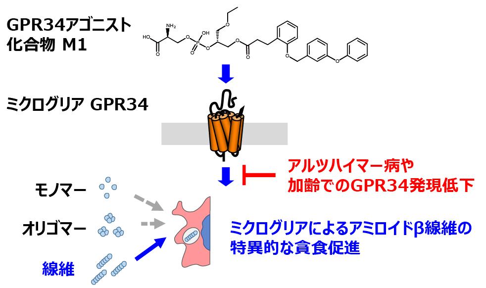 アルツハイマー病の原因物質を除去するミクログリアの新規活性化機構を発見――GPR34受容体の刺激がアミロイドβの貪食を促進――